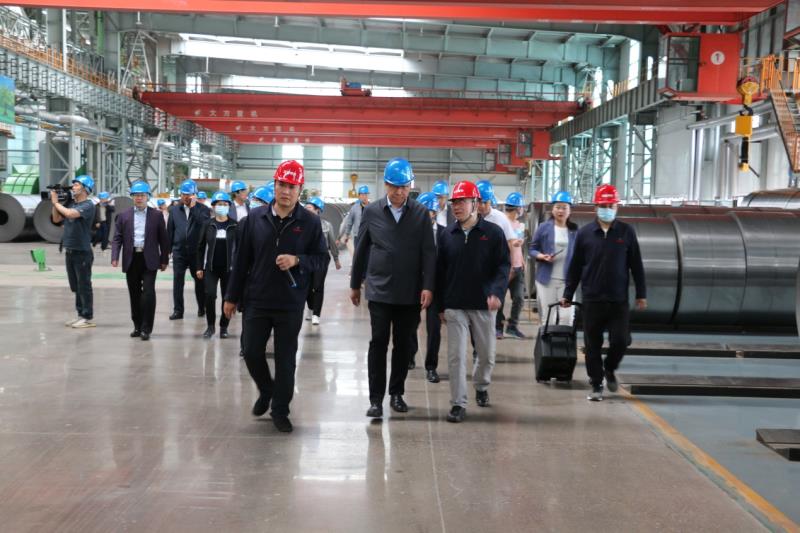 5月21日上午,觀摩團(tuán)一行在市委常委、統(tǒng)戰(zhàn)部部長孟和巴特爾的帶領(lǐng)下來到我公司。公司總經(jīng)理佟國山、黨委書記劉欣、黨委副書記李曉杰在現(xiàn)場(chǎng)迎接,并陪同觀摩團(tuán)參觀了公司年產(chǎn)200萬噸冷軋鍍鋅一期項(xiàng)目。劉欣書記代表公司詳細(xì)介紹了該項(xiàng)目的生產(chǎn)工藝流程,讓觀摩團(tuán)成員了解了黑色的熱軋帶鋼蛻變?yōu)楣饬恋腻冧\帶鋼的過程。